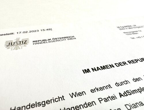 Eine Firma aus Vorarlberg hat unsere anwaltlich geprüften Datenschutztexte seit einiger Zeit ohne Lizenz verwendet und trotzdem den Quellverweis samt Verlinkung entfernt. Das ist ganz klar ein Vorgehen gegen unsere Nutzungsbedingungen. Denn unsere Kunden können unsere Datenschutztexte entweder käuflich erwerben oder unsere kostenlose Variante mit Quellverweis samt Verlinkung nutzen. Nachdem unser Rechtsanwalt die Firma abgemahnt hatte, brachte die Firma eine negative Feststellungsklage gegen AdSimple ein, weil sie war der irrigen Meinung, dass unsere Ansprüche ungerechtfertigt sind.