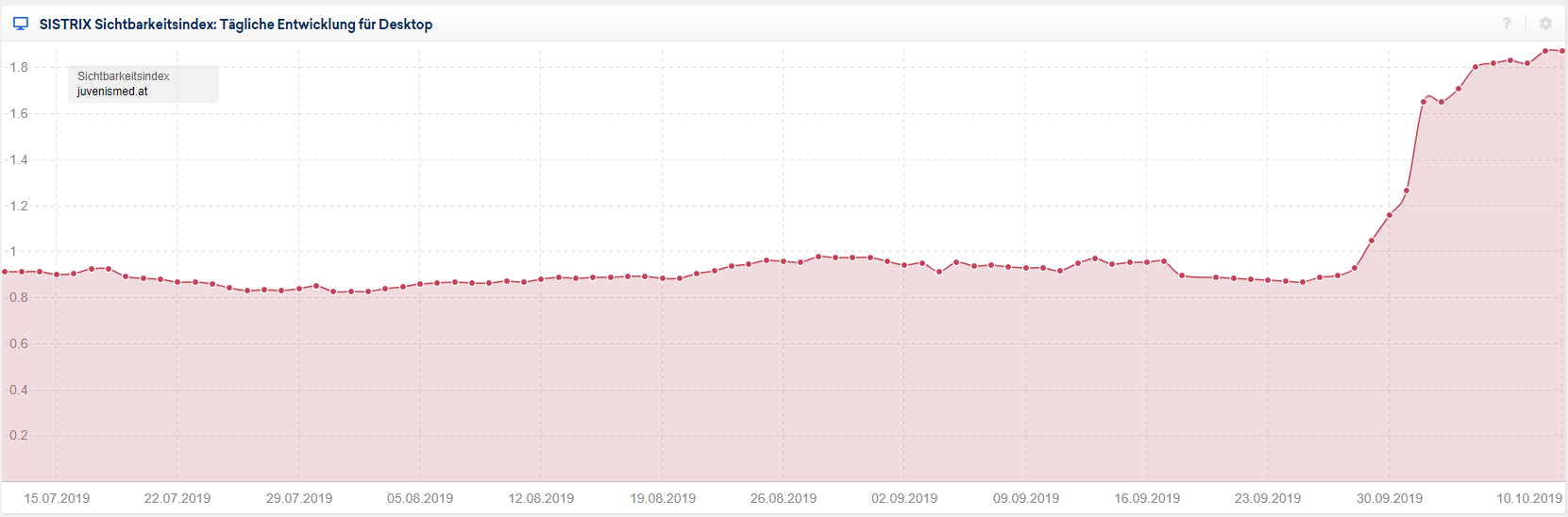 Am 3. Oktober hatte SEO-Experte Barry Schwartz schon einige klare Signale erkannt, und meinte, es handle sich höchstwahrscheinlich um ein Google-Algorithmus-Update. In den SEO-Foren teilten dann viele Webmaster diese Vermutung, da sie klare Veränderungen in den Google-Rankings erkennen konnten. Auch am Beispiel unseres Kunden sieht man die deutliche Sichtbarkeits-Steigerung im September und dann nochmal im Oktober.