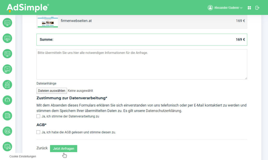 klicken auf den grünen „Jetzt anfragen“-Button. Wir werden Ihre unverbindliche Anfrage so schnell wie möglich beantworten.