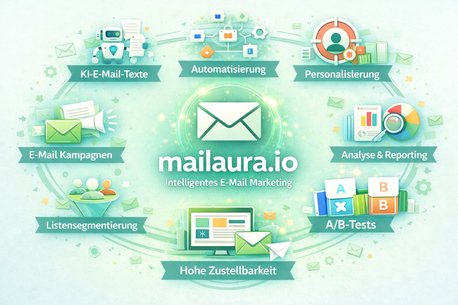 Mailaura ist eine cloudbasierte E-Mail-Marketing-Plattform aus Österreich, die genau für diese Herausforderungen entwickelt wurde. Der Fokus: maximale Leistung bei minimalen Kosten – kombiniert mit modernster KI-Technologie.