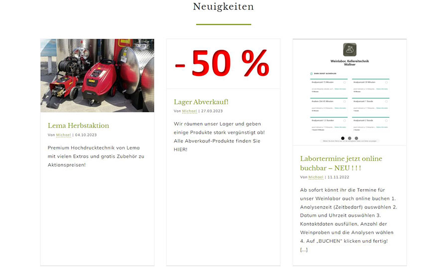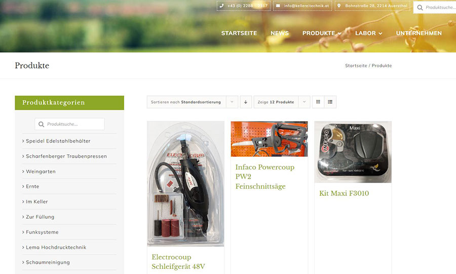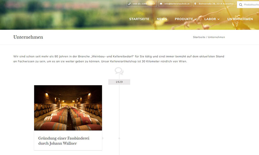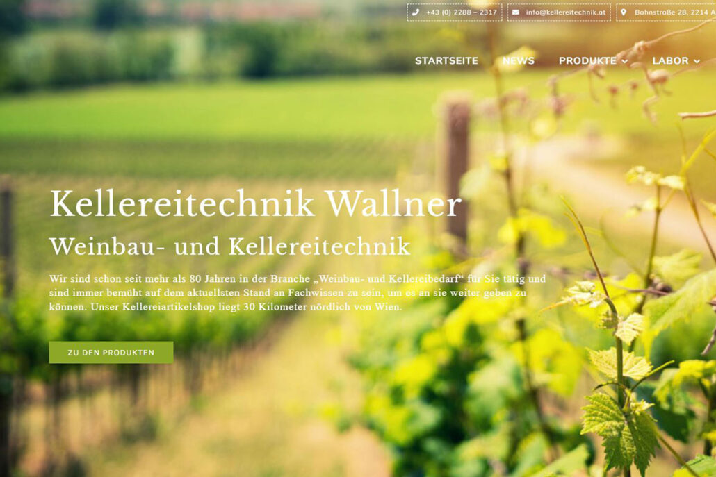 Seit mehr als 80 Jahren ist unser Kunde bereits im “Weinbau- und Kellereibedarf” tätig. Mit dieser Erfahrung und der Leidenschaft für neue technische Entwicklungen unterstützt das Unternehmen Menschen aus ganz Österreich bei deren Projekten. Unser Projekt war es nun, eine Website zu gestalten, die dieses Know-how vermittelt und Websitebesuchern einen Überblick über alle Produkte und Dienstleistungen von Kellereitechnik Wallner bietet. Tatkräftig machten wir uns an die Arbeit und schon sehr bald erblickte eine schöne und übersichtliche neue Website das Licht des World Wide Webs. 🙂