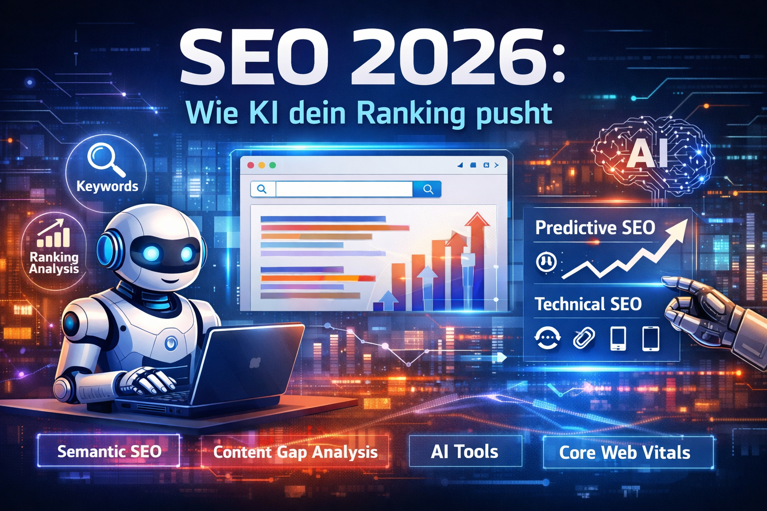 Content haben wir. Chatbots haben wir. KI-Tools schießen wie Pilze aus dem Boden. Aber eine zentrale Frage bleibt: Wie finden Menschen deine Inhalte überhaupt? Genau hier kommt SEO ins Spiel – und zwar in einer völlig neuen Dimension. SEO im Jahr 2026 ist ohne KI praktisch nicht mehr denkbar. Der Grund: Google selbst arbeitet längst KI-basiert. Wer heute und in Zukunft sichtbar bleiben will, muss verstehen, wie KI die Suchmaschinenoptimierung verändert.