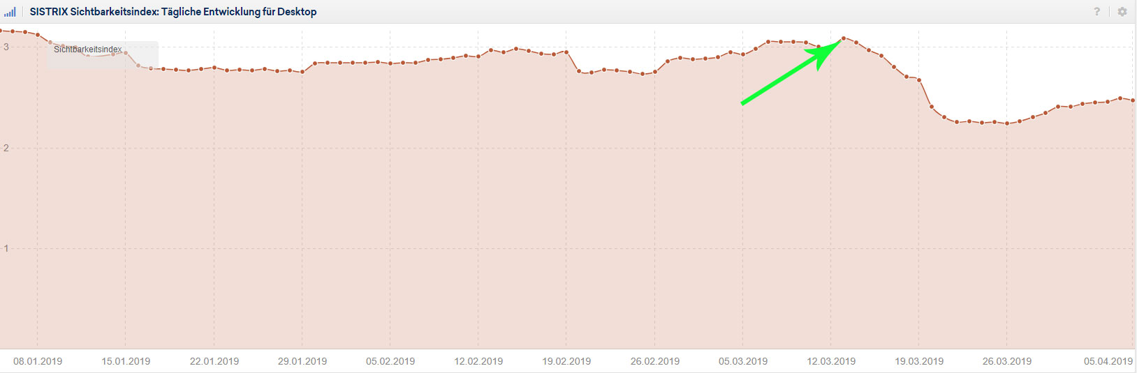 Bei großen Google-Updates ist es oft so, dass Sie die Auswirkungen schnell und im vollen Ausmaß sehen können. Häufig innerhalb weniger Stunden, manchmal dauert es auch einige Tage. Das ist auch bei diesem Update für die meisten der betroffenen Domains der Fall. Geben Sie Ihren Domainnamen in ein Analyseprogramm, wie beispielsweise SISTRIX oder Google Search Console, ein und vergleichen Sie Ihr Ranking vor und nach dem March Update. So können Sie sofort feststellen ob und wie das diesjährige Update Ihr Ranking bei Google beeinflusst.
